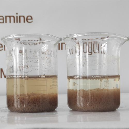噸水投加200ppm焦化廢水專用脫色劑,再投加200ppm聚合氯化鋁,最后投加5ppm陰離子聚丙烯酰胺。處理后上液澄清,絮體下沉。