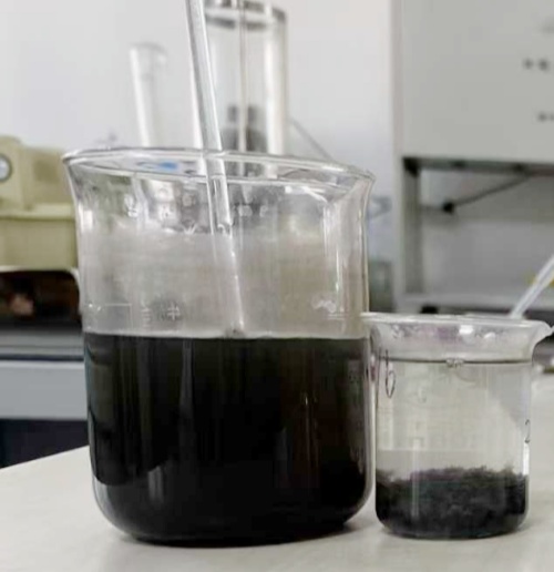 使用我司脫色劑后與原水對比,水變清澈且絮凝效果顯著,客戶很滿意效果。