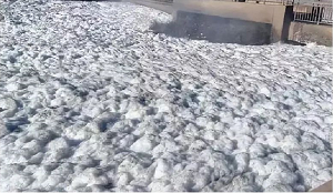 如果是濃密的白色泡沫,遠(yuǎn)看像一片白乎乎的棉花糖,這就是典型的化學(xué)泡沫。